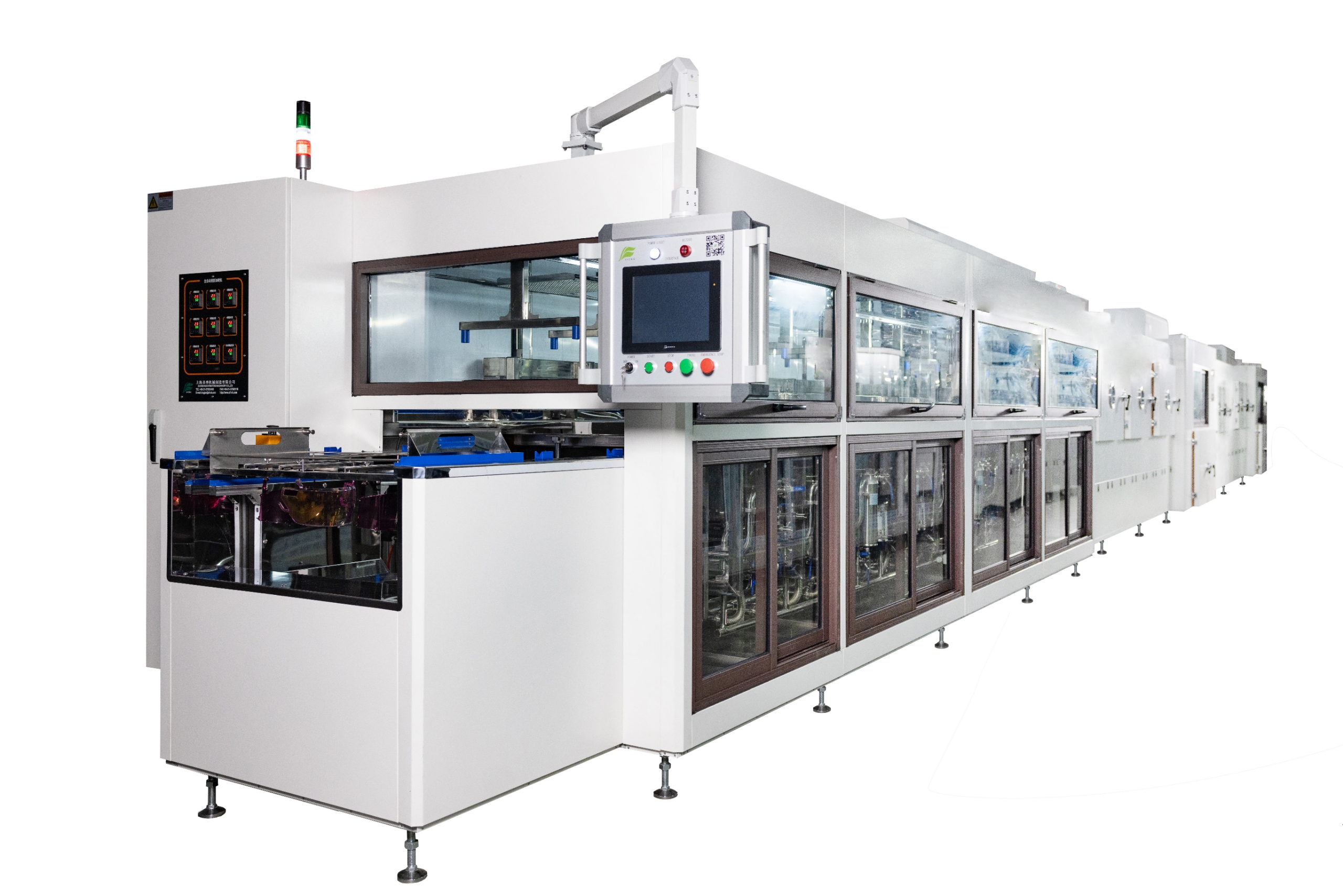 超聲波清洗系統:高頻超聲波(28KHz-40kHz-68kHz)結合多槽設計(清洗、漂洗、純水槽),確保無死角清潔。
